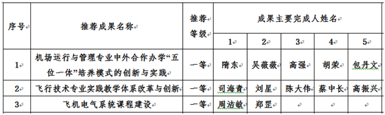 根据《南京航空航天大学关于做好2017年度校优秀教学成果奖评选工作的通知》(校教字〔2017〕77号)文件精神,以自愿报名、择优推荐为原则,经学院审核,学院拟推荐“机场运行与管理专业中外合作办学“五位一体”培养模式的创新与实践”等3个项目参加2017年度校级优秀教学成果奖评选。