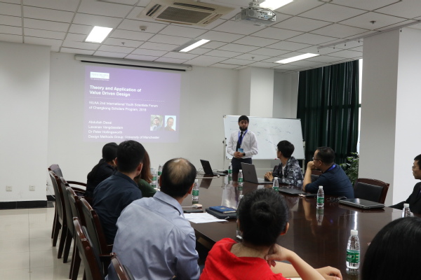 会上,三位嘉宾分别做了专题学术报告。英国曼彻斯特大学MEng Aerospace Engineering系Abdullah Desai博士做了“Theory and Application of Value Driven Design”的报告,介绍了新颖的基于价值驱动的设计理念,以及在航空、航天、建筑设计中的应用情景。新加坡国立大学工业与系统工程管理系研究助理教授李浩斌作了题为“通过离散事件数位孪生实现企业系统的人工智能”的报告,介绍了离散事件数位孪生的研究动因,主要问题和方法,以及在物流、海运、民航等领域的应用情景。汉堡物流与企业管理技术大学的博士后研究员孙鹏作了题为“基于时变与带时间窗的配送车辆路径问题研究”的报告。介绍了目前学术界流行的自适应大领域搜索算法,以及如何使用该算法解决基于时变与带时间窗的装卸一体化车辆路径问题。并概括介绍了学术界比较热门的精确算法,比如动态规划,列生成和分支剪枝技术等。分论坛会场气氛热烈,师生和嘉宾的交流互动频繁。