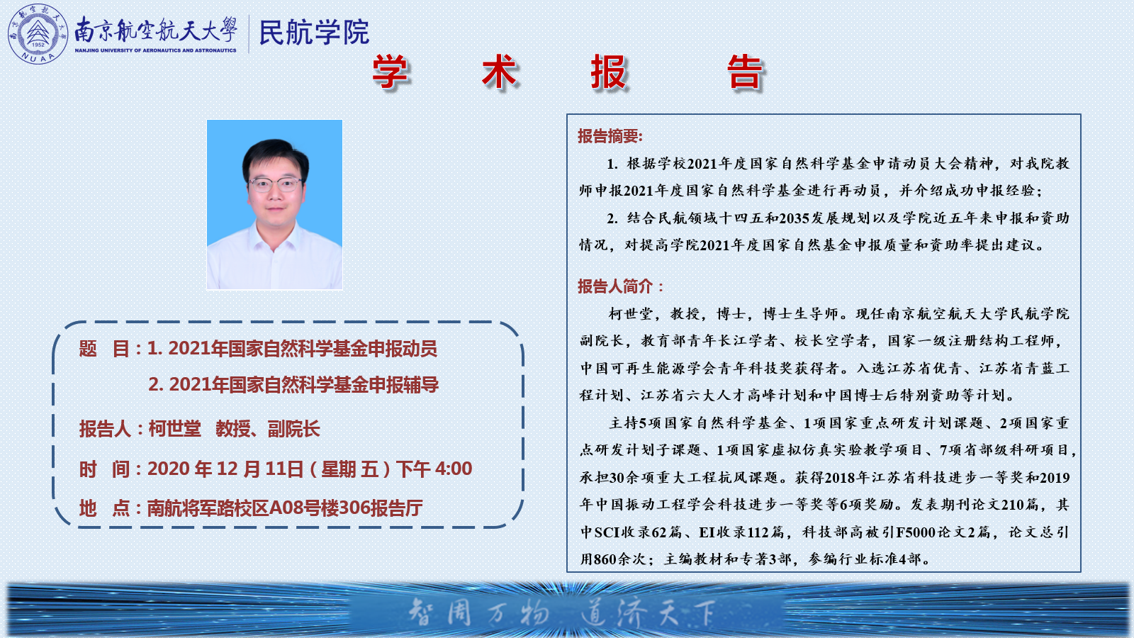 关于举办“2021年国家自然科学基金申报动员及辅导大会”的通知