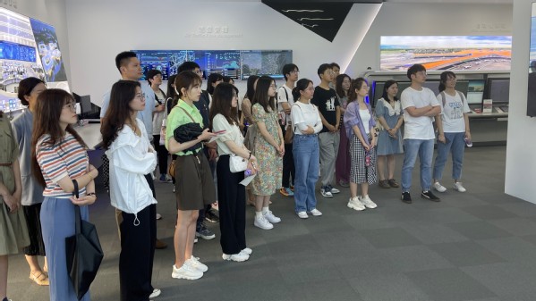 在智慧空管展览厅,同学们了解了近几年莱斯集团研究出的明星产品,例如大兴机场A-SMGCS系统、空管自动化系统。参观现场气氛活跃,在场研究生们还饶有兴致的戴上了VR眼镜,亲身体验大兴机场模拟场面技术效果。同学们无不为尖端技术而震撼,激发了广大研究生们对工匠精神的思考和讨论,增进了同学们对当前先进技术的理解。