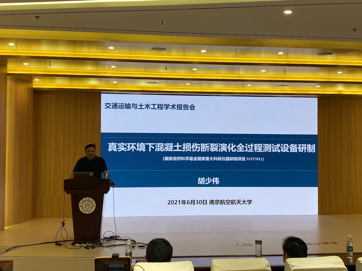 胡少伟教授做了题为《真实环境下混凝土损伤断裂演化全过程测试设备研制》的学术报告,报告系统介绍该研制仪器的研制方法、科学价值、仪器指标的先进性和方案的创新性,以及目前主要取得的研究成果,并就下一步的研究方向与在座的师生进行热切地交流。