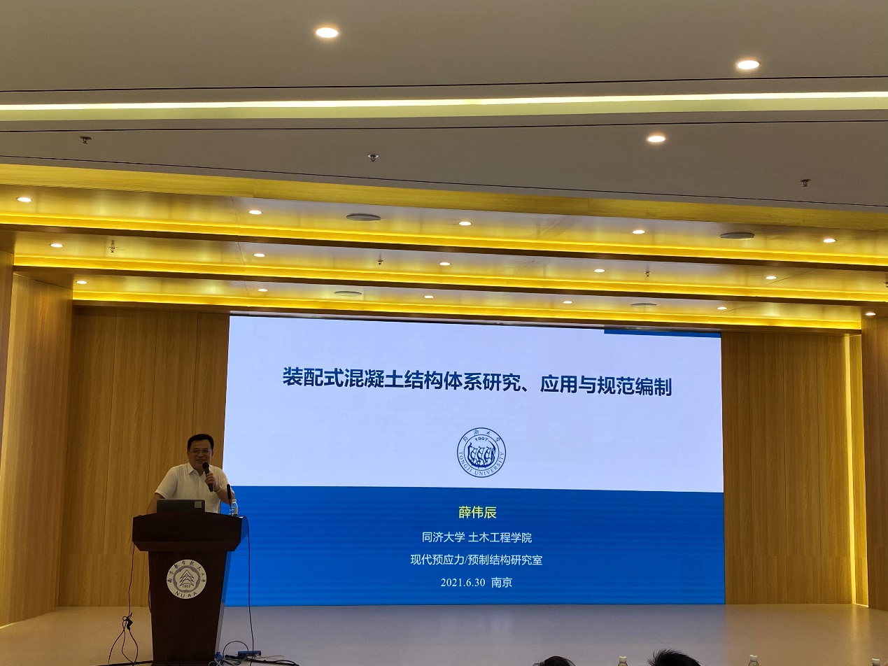 薛伟辰教授做了题为《装配式混凝土结构体系研究、应用与规范编制》的学术报告,内容主要介绍了装配式混凝土结构体系的研究背景,回顾了其团队近年来在装配式混凝土建筑结构和综合管廊结构体系研发、示范工程应用和规范编制方面的主要成果,着重强调研究要聚焦于实际工程需求,报告结束后薛教授与现场师生做了广泛的交流。