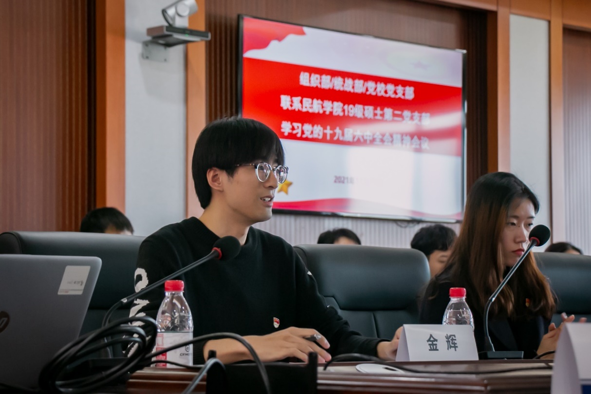 与会党员们围绕党的十九届六中全会精神展开深入交流研讨。组织部方正副部长从学习方法论的角度出发,提出要带着问题学、原原本本学、联系对照学,对各位党员如何学习党的十九届六中全会精神提出指导建议。学生党员黎子弘从经济和民主两个方面,分享自己对中国特色社会主义道路优越性的理解。学生党员李倩、李超、兰思洁等同学也都结合历史与时政,分享了自己独特的见解与思想感悟。