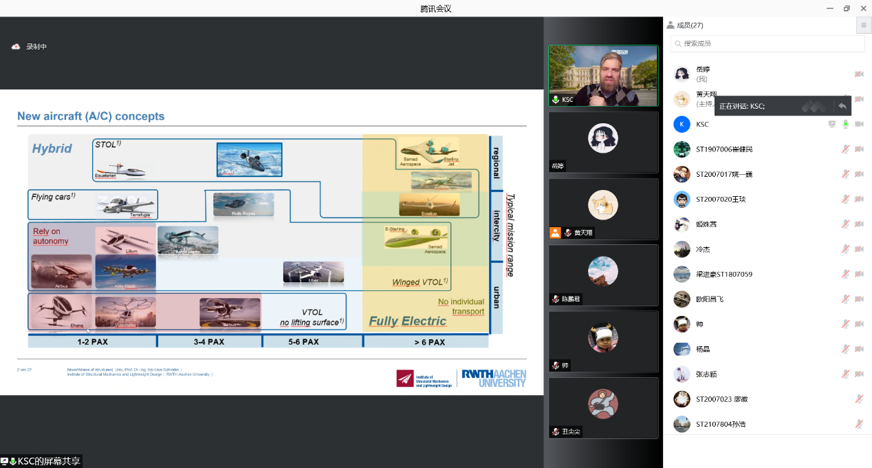 11月26日下午,“民用航空讲坛”第二十期讲座采用线上线下相结合的形式成功举行,线下会场设置在将军路校区A08号楼312智慧教室。本次讲座由best365英国体育在线黄天翔老师主持。德国亚琛工业大学结构力学和轻量化设计研究所(SLA)所长Kai-Uwe Schröder教授再次受邀为师生带来了一场围绕结构适航性展开的线上讲座。