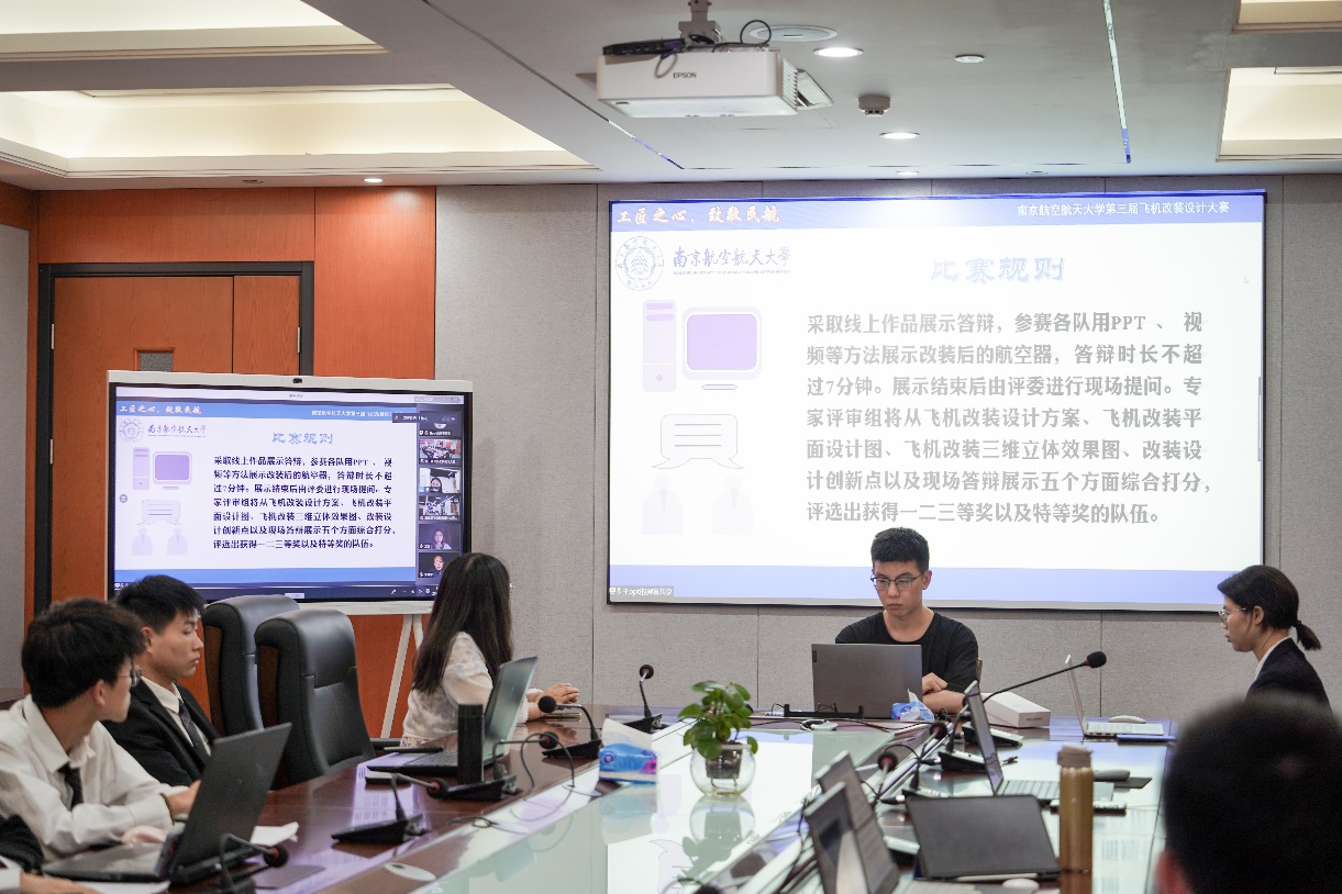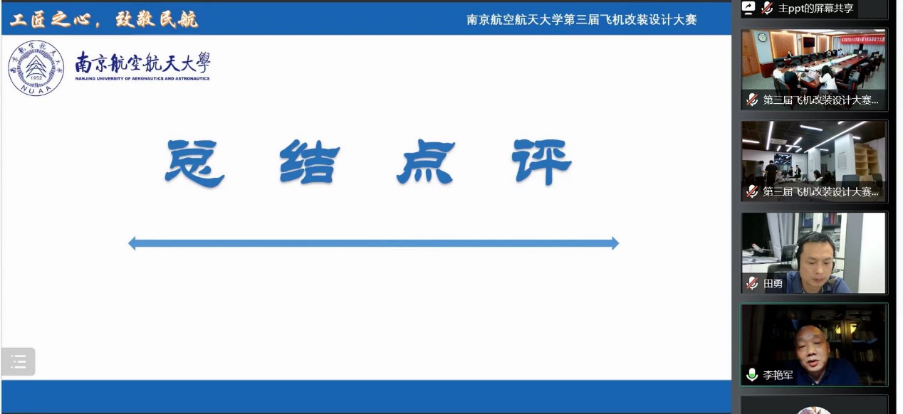 610日晚,由best365英国体育在线举办的南京航空航天大学第三届飞机改装设计大赛决赛于天目湖校区best365英国体育在线科创空间和将军路校区best365英国体育在线1213会议室同步进行。根据疫情防控的要求,本次比赛采用线上线下相结合的答辩方式。波音公司波音研究与技术部客舱技术研究员龙珑女士,中国民航局结构委任工程代表、山东太古高工赵伟岩先生,中国民航局系统和设备委任工程代表、山东太古高工宋青女士,best365英国体育在线党委副书记王艳、副院长田勇,工程系主任丁萌、教授李艳军、副主任宫淑丽、教师曹愈远以及best365英国体育在线团委书记赵慧文和学生代表共同参与此次大赛。
