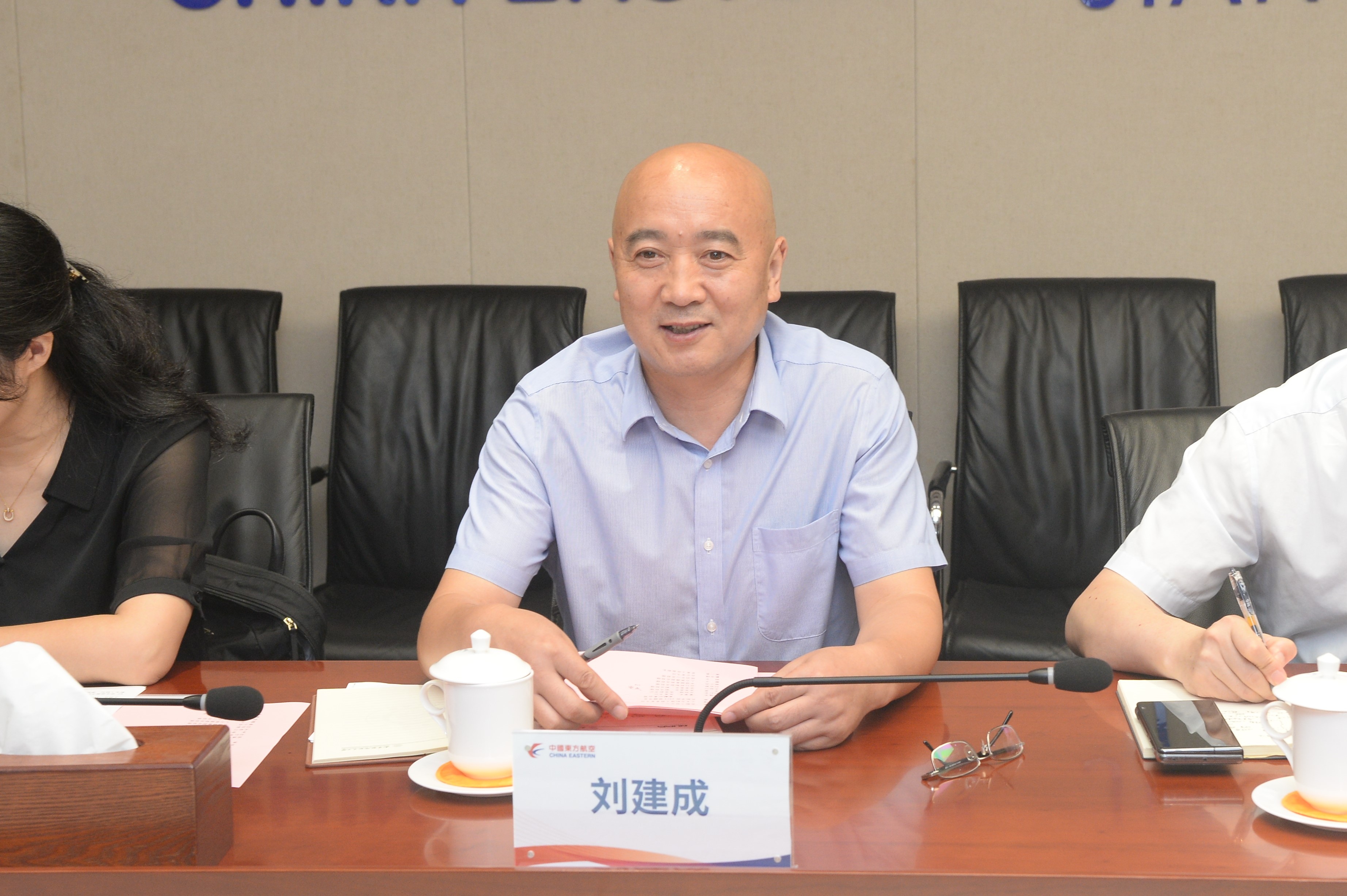 座谈会前,刘建成、孙建红一行还参观了东航江苏公司AOC大厅、联合派遣大厅和培训中心。