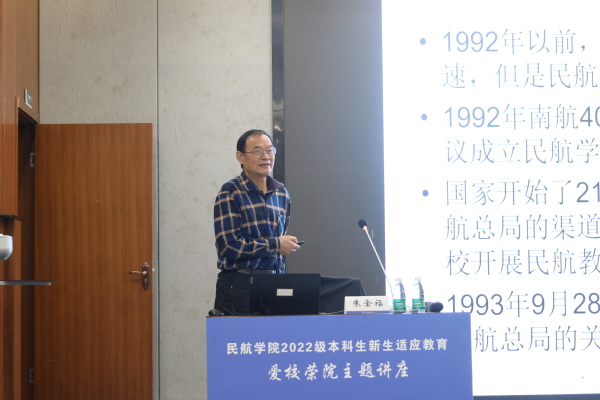 为了进一步拉近师生距离、增进师生感情,了解学生成长成才需求,强化学生对学校、学院和专业的价值认同和情感根基,促进名师教授们与大一学生“跨区”交流分享。10月7日,学院邀请朱金福教授为全体2022级新生讲授爱校荣院教育主题讲座。