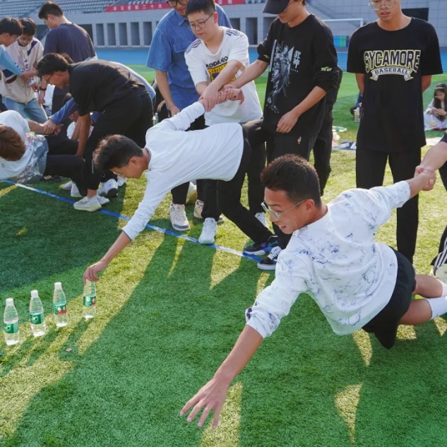 活动推进到了群龙取水环节,成员们两人一组,尽力去取到最远的水瓶,谁也不松懈,因为彼此间缺一不可。