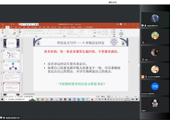 徐灿重点交流了自己学术科研创新的三个角度:一是新概念,通过多学科交叉,进行概念迁移;二是新模型,以目标函数的创新为例展开分享;三是新方法,将优化算法、机器学习、仿真软件算法的突破与改进等新技术、新方法应用到研究中去。她强调:“学术研究的前提是具有研究意义和价值”,建议同学们依据自身特色制定个性化计划并坚决执行,统筹做好宏观和微观计划,即宏观上可按月、按季度制定需要完成内容,微观上可具体到实际的每一天、每一个项目的计划。最后,徐灿嘱咐同学们要摆正心态,拒绝焦虑,高效学习,以平和、勇敢、顽强的心态去面对科研中的困难。