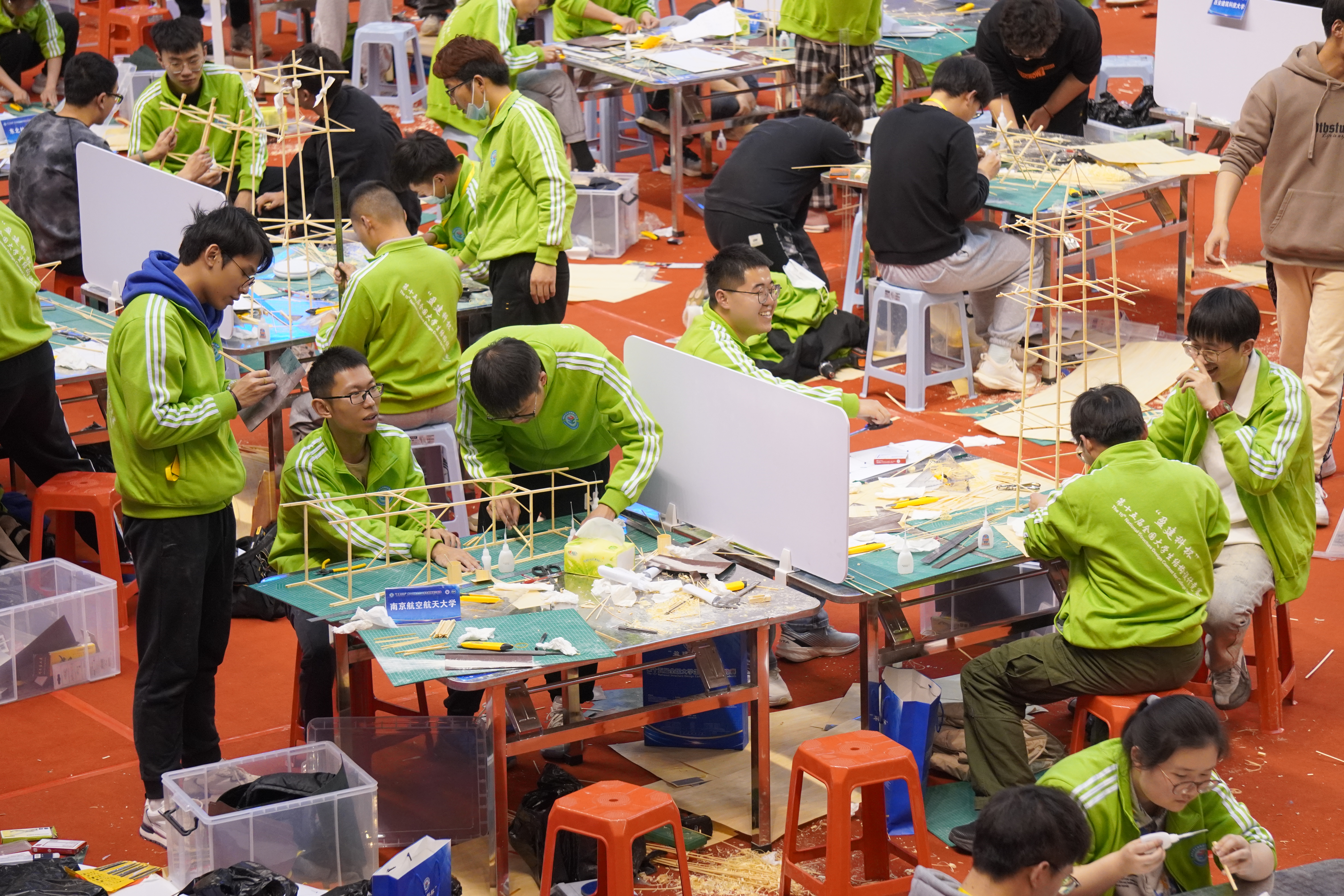 本届竞赛共有来自全国31个省(自治区、直辖市)514所高校的1209支代表队参加。经过省赛的比拼,来自同济大学、清华大学、东南大学、浙江大学、哈尔滨工业大学、南京航空航天大学等110所院校的111支代表队闯入决赛,同台竞技。比赛要求各队伍以三重木塔结构为基本单元现场制作模型,并针对现场随机抽取的竖向荷载、扭转荷载及水平荷载等多种工况,进行模型加载试验。