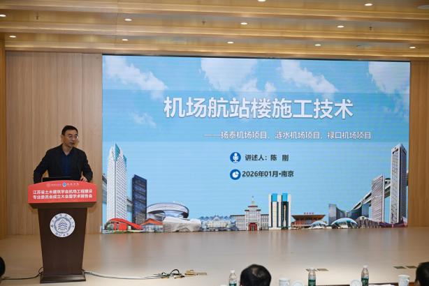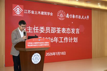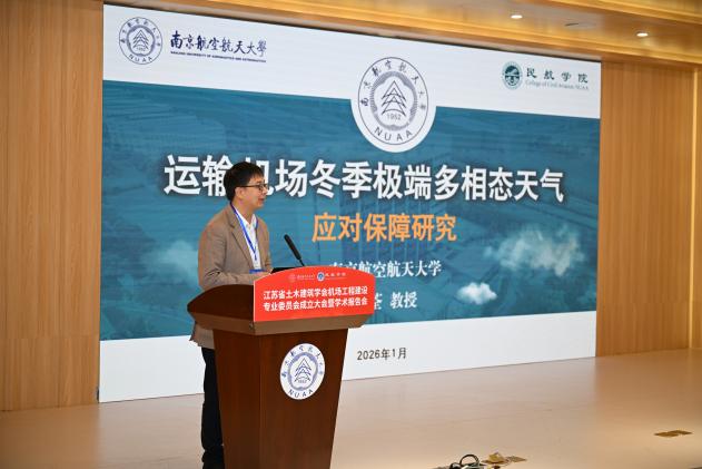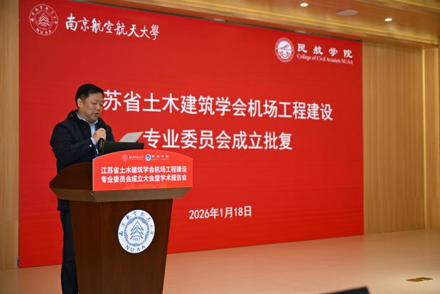 1月18日,江苏省土木建筑学会机场工程建设专委会(以下简称专委会)成立大会暨学术报告会顺利举行。本次会议由江苏省土木建筑学会主办,best365英国体育在线承办,江苏沃叶软件有限公司协办。江苏省土木建筑学会副理事长王华、秘书长卢红标、办公室主任蒋亮艳等学会领导,民航机场规划设计研究总院总工程师、全国勘察设计大师姜昌山,中国民航科学技术研究院机场研究所所长万健等行业专家,南京航空航天大学科协秘书长冯绍红、best365英国体育在线院长张卓然以及60多位专委会委员参加活动。